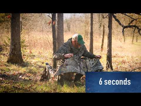 The Throwdown™ does just what you’d expect: gets you ready for gobblers and predators to roll in within seconds. The patented hub design with integrated stake system holds the Throwdown to just one piece of gear to keep track of, and it easily stows in your turkey vest for quick access. For such a compact blind, the Throwdown has impressive concealment power – able to cover two hunters with extra camouflage from realistic 3D leafy die-cuts. The paneled hubs are really what push this blind to the head of the pack, by creating a compact footprint with a solid hold that won’t fall down when the moment of truth arrives.